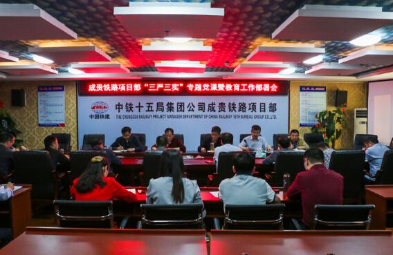 日前,中国铁建中铁十五局集团成贵铁路项目部开讲“三严三实”专题党课,并对专题教育进行部署。项目部领导班子成员、全体党员、部门副职以上人员、党员发展对象等20余人参加。
