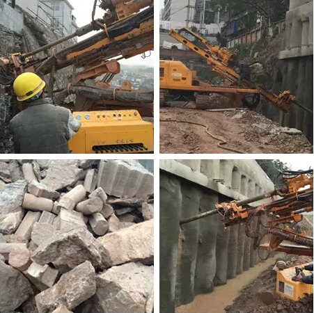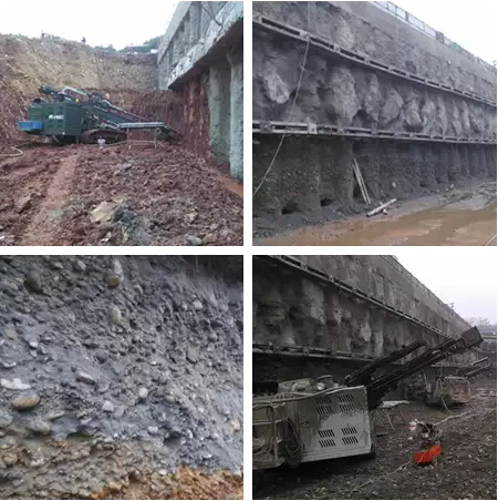 但此时客户对国产品牌的锚杆钻机仍放心不下,在刚进场时,施工方、宇通业务经理都齐聚工地,实地亲测国产锚杆钻的效率!YTA820A锚杆钻机在大家焦灼等待的目光中,开始干活:孔径200mm,孔底扩大至600mm,孔深24m,卵石层的地质,宇通锚杆钻轻松完成,应对自如,所用的时间几乎和国外进口锚杆钻一样,全场人都为之折服,当亲眼看到宇通重工锚杆钻在基坑支护上优异的表现时,客户紧张的心情也彻底得到了放松。