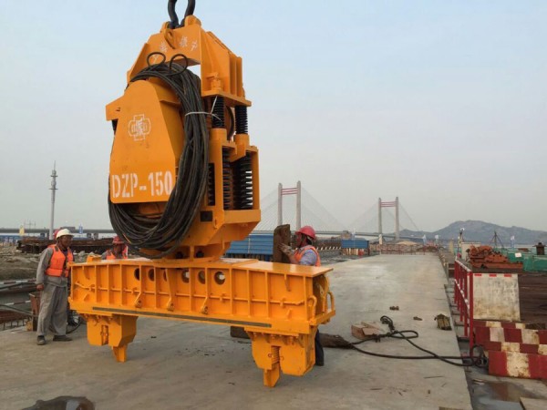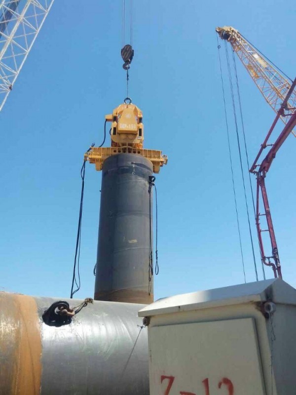此次进行桩基础双护筒的,是振中两台DZP150免共振振动锤。施工的技术员们在施工之前,仔细的检查桩锤,保证每一个细小的点,都不会出现问题。