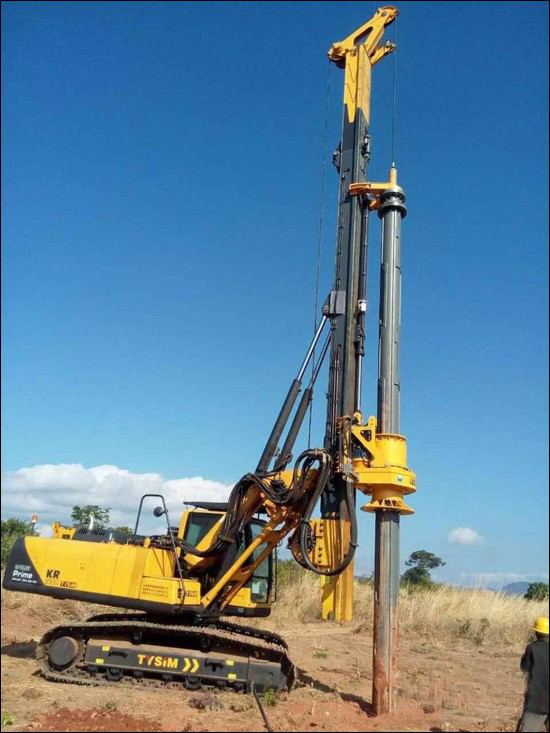 目前,KR125A旋挖钻机在经过前期的相关打桩测试后,已配合当地施工队的正常施工,大大提高了塔基的施工速度,保障了项目进度的顺利实施。新设备的到来,加快了进度,获得赞比亚当地业主的认可,也标志着泰信机械TYSIM的小型旋挖钻机顺利进入输电线路建设的更广阔市场。中国水利水电相关领导表示,小型旋挖钻机在输电项目桩基础施工的使用,在该输电建设领域是一个创新,该公司将总结施工经验,升级施工工法,在全公司推广。