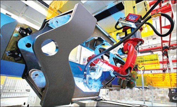 据徐工信息总经理张启亮介绍,联合厂房在下料、焊接、机加工、涂装、装配单元运用了大量先进、高效的智能化制造技术和工艺设备。为提升智能化制造水平,焊接机器人、喷涂机器人、切割机器人等自动化设备在工艺建设过程中被大量运用。如,配置了大量焊接机器人,建成了2条自动化焊接线,无论是配置的数量还是使用的范围在装载机行业都是绝无仅有的,如装载机铲斗的整个焊接制造过程全部实现了无人化,大幅度降低了人工成本,显著提高了焊接质量。
