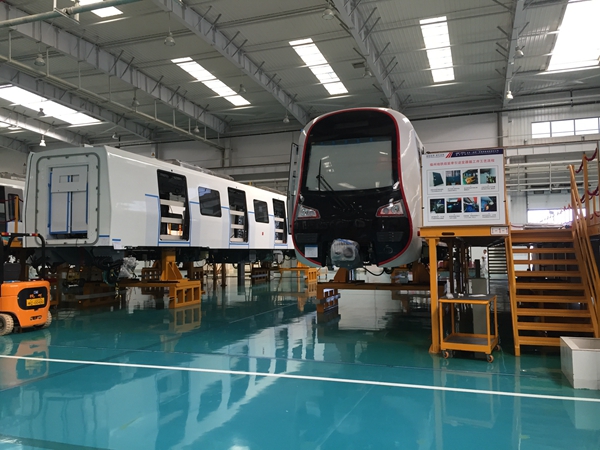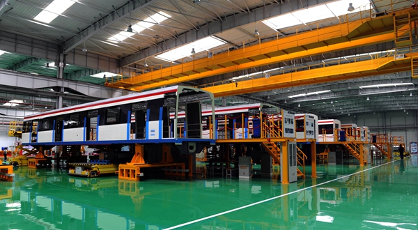 图为中车泉州公司组装车间采用与高速动车组生产一致的组装平台组装工区