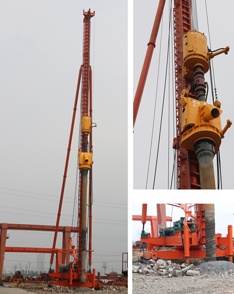 桩基础用双动力头潜孔锤凿岩钻孔机由双动力头长螺旋和套管钻机与气动冲击式潜孔锤组成,是一款典型的机电气一体化产品。