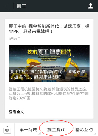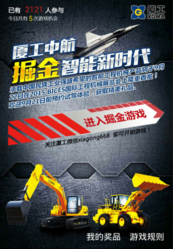 核心提示: 自8月21日17时,厦工中航掘金智能新时代掘金游戏活动上线以来,就迅速吸引了火爆的人气,短短两天,参与游戏的人数就已经突破
