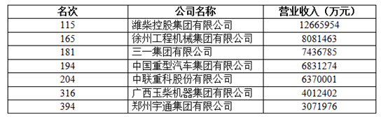 工程机械行业此次共有7家企业上榜,潍柴以12665954万元的收入领跑行业,在500强中位列第115位;徐工以8081463万元的收入位居行业第二,在500强中位列第165位,三一重工以7436785万元的收入位居行业第三,在500强中位列第181位。