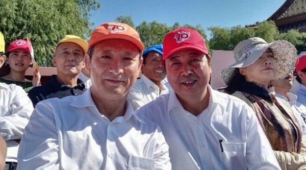 王民董事长与华西村吴协恩书记在阅兵现场同祝世界和平友好