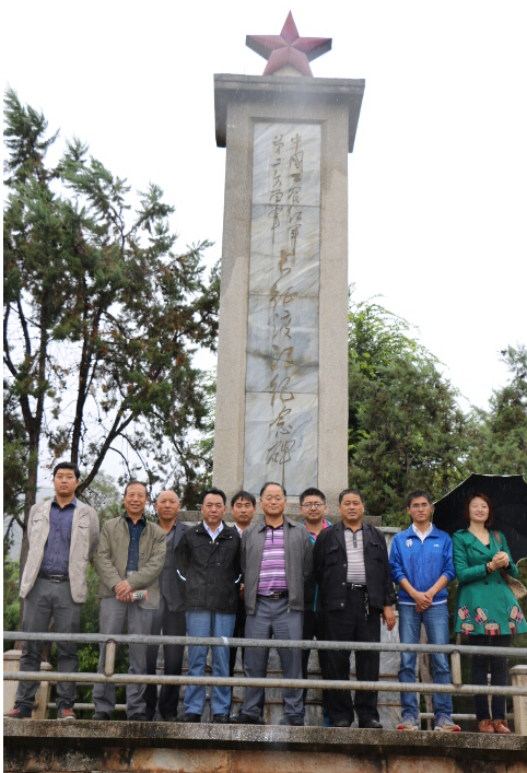 中铁二十一局集团三公司丽香铁路项目部党工委书记刘文阁、党工委副书记、项目经理杨广运,为加强对全体职工进行爱国教育,缅怀先烈,坚定信念,爱党爱国,共建和谐,构筑中国铁建人的新梦想,按照党员带团员和青年骨干的方式,分批次组织全体职工到石鼓镇爱国主义教育基地接受教育。此次接受教育的6名党员和5名团员青年,听取了解说员讲解的红军在石鼓镇渡江北上的感人故事,在英雄纪念碑前进行了“爱党爱国爱企业”宣誓。他们表示:要牢记革命历史,爱党爱国,忠诚企业,努力构建路地和谐,尽职尽责,修桥筑路,为丽香铁路建设拼搏奉献。