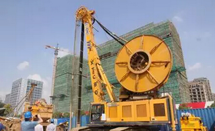 与会来宾参观了徐州地铁一号线施工工程,现场有一台徐工XTC80型双轮铣槽机(又名天禧)、一台徐工XG600D地下连续墙抓斗正在施工,来宾们近距离观察了产品的施工情况,并向公司技术人员咨询了具体技术参数。