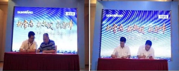 宴会现场 ,山河智能与北京市政、宁波易通、韩国CNE等公司相继签订了购机合同,全体在场人员共同举杯欢庆将本次宴会推向高潮。