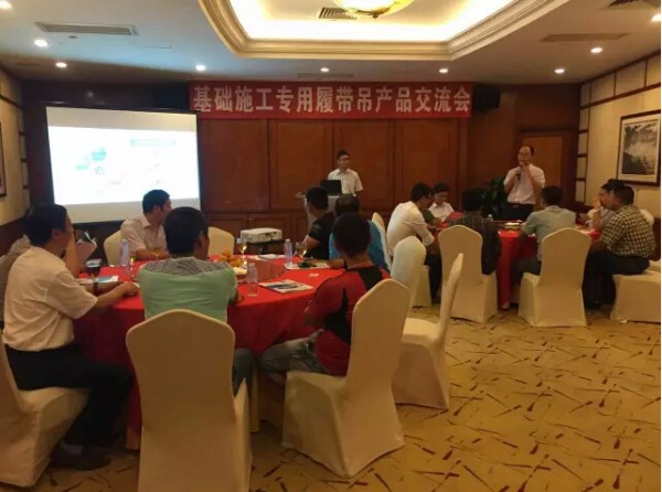 会上郭总和谢经理分别对我公司多年以来对基础施工专用履带吊的专注研究发展历程及宇通重工YTQU55B、YTQU75B和YTQU95B的产品特点进行了详细的介绍。从2007年至今,我司专注生产基础施工专用履带吊,有着8年的生产施工经验。目前我公司基础施工专用履带吊具备冲抓斗施工、振冲施工、挤密桩施工、SDDC施工等十余种基础施工能力,产品工作效率高,频繁变载抗冲击能力强,以其良好的工作性能领先国外同类设备。