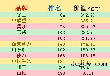 二、徐工品牌价值392.79亿元行业居首。英国KHL发布最新全球工程机械排行榜徐工列中国第一