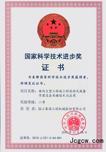 12月16日,国务院颁发自然科学奖、国家技术发明奖、国家科学技术进步奖和国际科学技术合作奖。徐工集团“面向大型工程施工的流动式成套吊装设备关键技术与应用”项目获得2015年度国家科学技术进步二等奖,是工程机械行业年度唯一获奖项目。