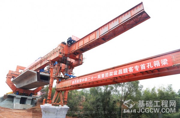 ——赣州制梁场率先全线成功架设第一片箱梁。