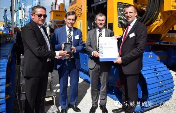 在BG BAU的官方接待期间,宝峨机械和克莱姆被授予了2016 EuroTest奖。这个奖项表彰了宝峨在新的安全装置使用上的创新。这个新的安全装置已经在一些宝峨的钻机、液压抓斗和克莱姆钻机上使用。这个奖项也被颁给新研制的克莱姆模块化钻杆夹持系统(HRB系列),表彰其对于职业健康安全理念的创新。