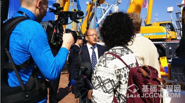 德国当地主流媒体莱茵美茵电视台、萨沃电视台、杜塞尔多夫电视台采访徐工集团副总经理李锁云