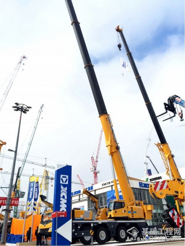 而今,徐工第九次亮相德国慕尼黑展,尤为值得一提的是,此次参展设备全部通过CE认证,符合欧III、欧IV标准,许多产品都是针对欧洲市场专门设计、研发,首次亮相。“我们这次参展的100吨全地面起重机拿到了世界上最严苛的道路汽车法规认证,在国内我们是独一无二的;我们的整车轻量化水平和性能重量比上在全球都是领先的,比利勃海尔要高5%到10%。”谈到此次参展的XCA100_E全地面起重机,徐工起重机械事业部副总经理单增海很是自豪。