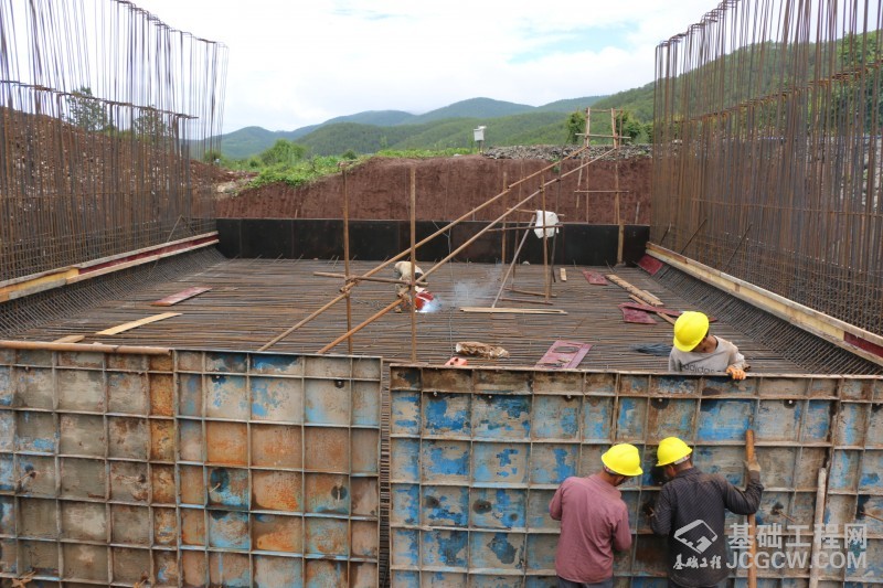 为防止雨水对框架涵的影响,职工们正在对框架涵模板进行再加固
