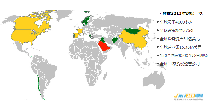 截止2013年,赫兹全球员工4000名员工,全球设备场地375处,在150个国家拥有8500个项目现场。赫兹设备租赁于2008年进入中国市场,并在上海、成都、广州、天津及南京成立了分公司,在青岛、宁波等城市设立代表处。在中国,赫兹是业内设备最新最全的租赁公司之一。