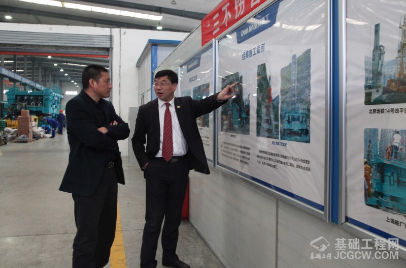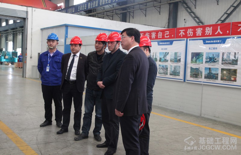 谢兆伟董事长一行首先深入车间一线,参观了盾安重工全回转钻机生产线,总经理陈建海详细介绍了企业发展、生产经营、科研创新、新品研发、售后服务、产品性能和所取得的阶段性成果。多年来公司使终坚持以创新求发展的思路,秉承顾客第一、管理一流、服务一流、业务一流的发展理念,加快技术研发、产品升级,不断加大科研投入,紧跟全球设备制造和施工技术前沿。取得了有目共睹的成绩和进步,产品质量有口皆碑,远销国内外。