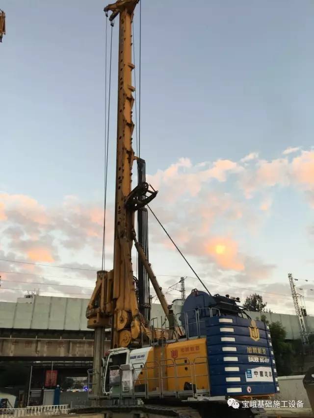 旭腾公司为该项目投入了一些大型设备,其中包括2016年引进的一台宝峨BG 46 大型旋挖钻机,采用额定功率570 kW的卡特C18发动机,主卷扬为单层卷扬,最大提升力达45吨,有利于提升超重钻具及渣土,在取芯时比较有效。此台宝峨BG 46旋挖钻机于2016年5月份投入使用以来,专门用于“啃骨头”,至今已经运行了5600多小时,在超深大直径、大范围入硬岩、穿越多层溶洞且垂直度要求极高的的工况下,充分展示了其超强的入岩能力和稳定可靠的技术性能;此外据现场统计,BG 46的平均燃油消耗仅为45升/小时,运行成本方面也独具优势。