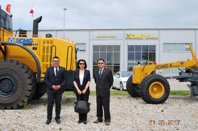 徐工进出口公司副总经理马小扣、徐工波兰公司总经理Michal Myczkowski 、副总经理Przemyslaw Bodzioch代表徐工对刘丽娟参赞一行的到访表示热烈欢迎并陪同参观与会谈。