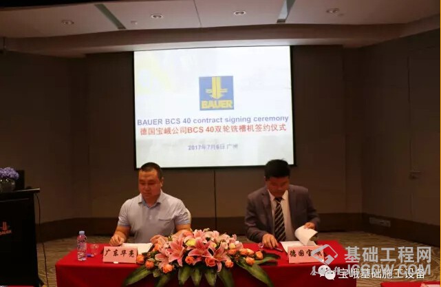 德国宝峨于2017年7月6日正式发布BCS 40铣槽机,这是宝峨在中国组装的第一款铣槽机,这款设备承载了宝峨自1984年以来累积的在铣槽机系统制造方面的经验。今天,我们在广州中心皇冠假日酒店与广东华亮建设有限公司举行第一、二台国内组装双轮铣BCS 40签约仪式。宝峨中国区销售总经理李明德先生代表宝峨感谢广东华亮选择与宝峨合作,并自豪地表示,又能够提供给我们的客户一个具有里程碑意义的产品——BCS 40!
