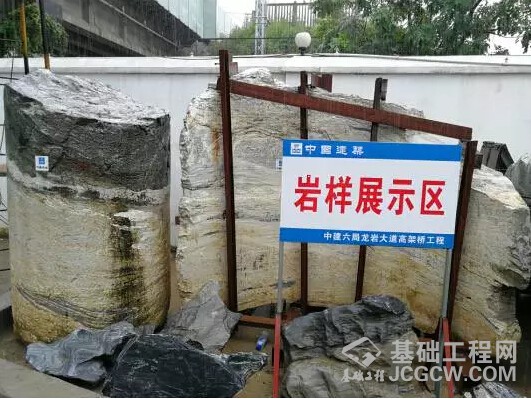 取出的岩样以石灰岩和花岗岩为主,要么是溶洞区的月牙状(地下极容易坍塌),要么是微风化的岩石(岩石极硬,硬度达到115mpa),每米基本要用掉6至10个合金牙轮钻头。国内大型桥梁入岩深度一般在设计桩基的4~5倍,2.5m桩基入岩只需10m左右即满足要求,由于需要穿越溶洞,本桥桩基础入岩达到70m左右,是正常入岩深度的7~8倍,在国内仅有。