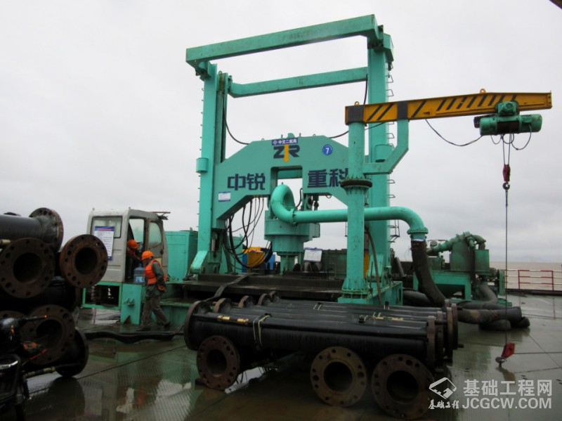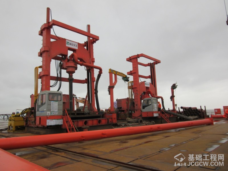 浙江舟山鱼山大桥项目最为突出的特点就是地质变化复杂,岩石强度40Mpa~110Mpa,个别桩岩石强度更高,入岩厚度10m左右,桩径超大,直径达到5m,桩长达到150m左右。如此超大直径桩基,海上工况又特殊,这是一般设备难以满足甚至无法适应的,给项目施工带来了不小挑战,受到业主方和总包单位的高度肯定,担此大任者唯有浙江中锐重科ZJD系列大口径全液压钻机!