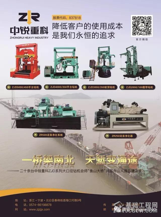 施工方采用中锐重科设备,乃实践验证了选择!请看施工成果:φ4.0m变φ3.0m,桩长130m深,成孔13天1根桩;φ5.0m变φ3.8m,桩长120m深,成孔20天1根桩。面对桩直径的多样化,中锐设备在施工中一直游刃有余,截至本网报道日,项目桩基已完成60%之多,一切均在预期中稳步推进。施工过程中,所有设备运行良好,性能稳定、表现突出。加上中锐重科快速反应、高效精准的售后服务给项目施工提供了有力的保障,按照目前项目进度,预计在今年10月份便能够顺利完成整个桩基工程施工任务!二十余台大口径全液压钻机集中在此上演“群机战鱼山”的精彩大戏,充分展示了浙江中锐重工科技股份有限公司技术实力深厚、创行业一流的品牌魅力!