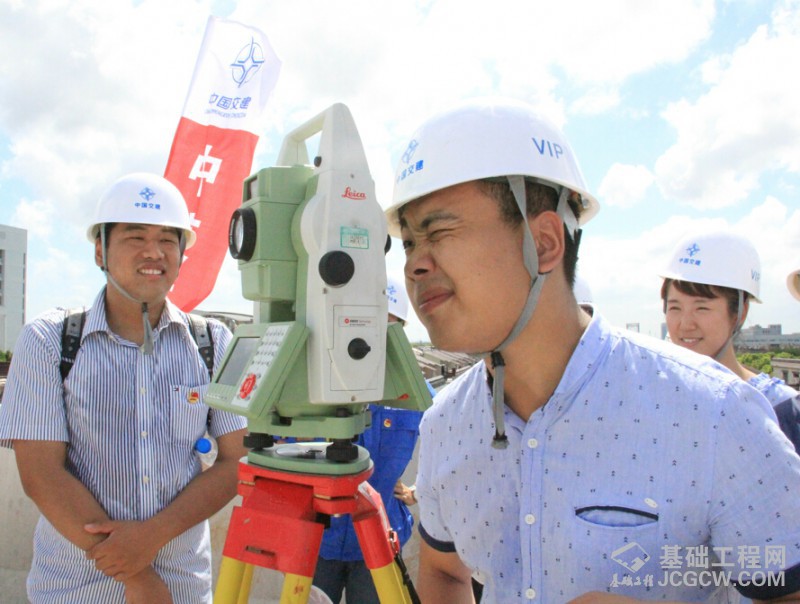 下午13:00,在嘉闵高架JMN2-2标项目团支部书记汪涛的带领下,大家一同参观了工地现场,参观过程中,项目部组织专业技术人员带队讲解,上海城市交通设计城维项目组陈陆英站激动地说:“这还是第一次走上高架,以前都是在电脑上画”,同时,她站在设计角度与项目部技术人员针对高架结构进行了创新创效创优讨论。随后,项目部测量副部长韦冬带领大家简单了解了工地“测量神器”全站仪的使用,大家纷纷亲自体验了全站仪。