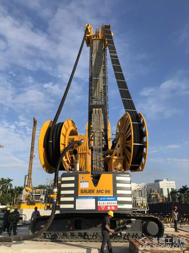 设备介绍:宝峨MC96•BC40液压双轮铣最大成槽深度120m,最大成槽厚度1800mm,单刀成槽长度2800mm。BC40铣槽机整体高度12.6米,具有很好的导向能力,配有12块纠偏推板,有效控制成槽的垂直度,采用宝峨专有的压力平衡装置,确保工作安全。标准铣轮和锥齿铣轮都配有摆齿,适合各种地层施工。采用MC96主机,配置卡特C18发动机和2个35吨的自由落钩卷扬机,适用于多种基础工程的要求。HDS100卷管系统可以高效地将泥浆排出,提高成槽速度。