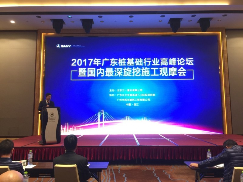 一款出生“名门”的设备,以专业论坛和专业施工观摩的形式来全面展示其与众不同的风范,这在新产品推介中可谓是理论阐释与实践应用相结合的新模式。2017年 12月12日,由国内著名桩工机械制造企业——三一重机主办的“2017年广东桩基础行业高峰论坛暨最深旋挖施工观摩会”在美丽的滨海之城湛江隆重举行,就上演了这样新颖的一幕。