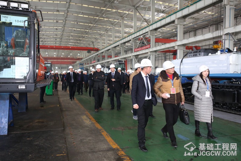 路过涂装车间,来宾们参观了基础工程机械产品及矿用自卸车的生产装配车间。车间两边分别是矿用车生产线和基础机械生产线。这些产品广泛应用于城市高层建筑、铁路、机场、大型石化基地建设中,是基础工程机械设备领域内产品系列最全,性能最优的一揽子设备供应商。从车间出来,大家兴致勃勃地来到展车广场,虽然天气很冷,但来宾们热情很高,看着广场上一台台崭新的旋挖钻、强夯机、矿用自卸车及新型桥检车,很多客户情不自禁拍照留念。