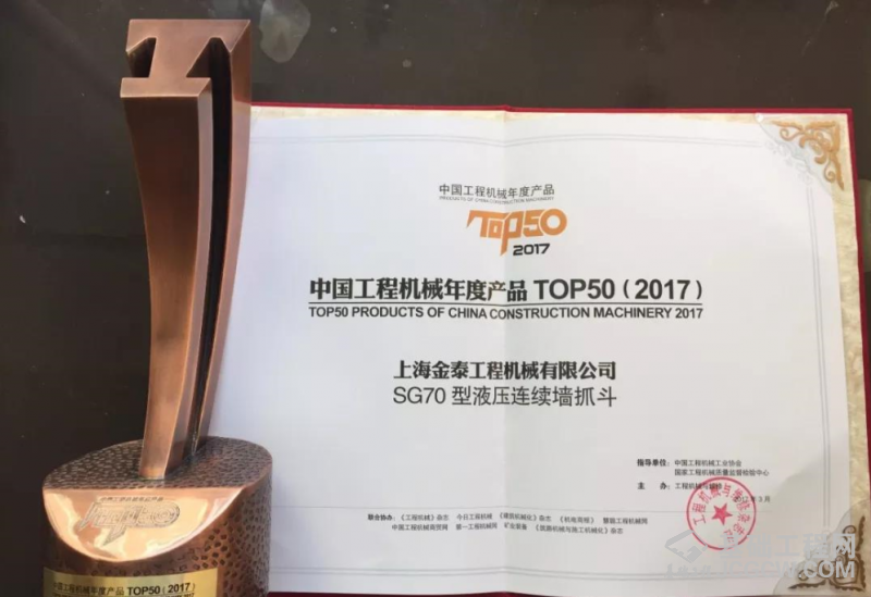 由中国工程机械工业协会、国家工程机械质量监督检验中心指导,《工程机械与维修》主办的“中国工程机械年度产品TOP50”评选展开角逐。上海金泰SG70地连墙液压抓斗荣获“2017中国工程机械年度产品TOP50”产品奖。