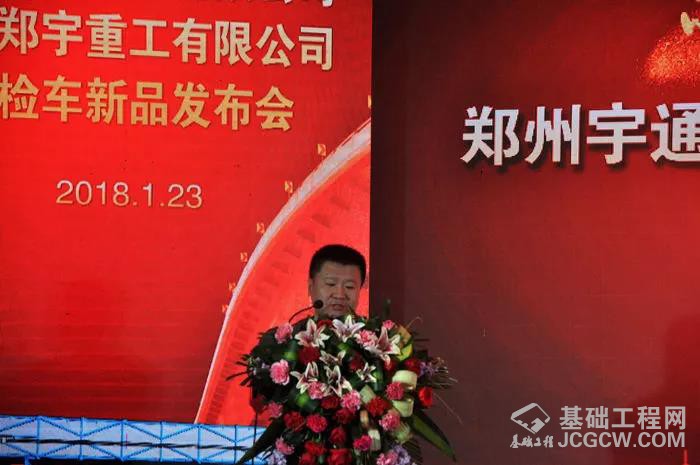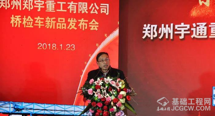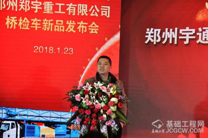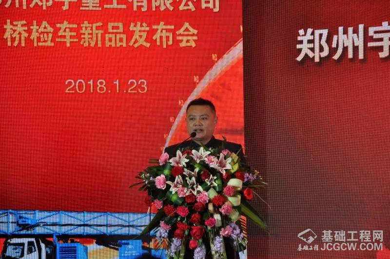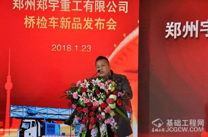 本次桥梁检测车新品发布会于上午八时三十分准时召开,郑宇重工董事长、总经理郭旭东先生致欢迎词,郭总表示宇通自2007年开始涉足桥检车,过去的十几年一直稳步发展,始终坚持“以客户为中心”的经营理念来定位产品,把产品的品质放在第一位,通过高品质的产品和优良的售后服务,保证客户可以获取最大投入产出比,确保产品终身成本最低,我们今天发布的新产品采用客车、履带吊以及国外先进产品的一些理念和技术,很多技术都是业内首次使用,必将给大家带来对桥检车的全新理解和认识。