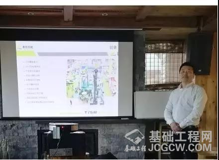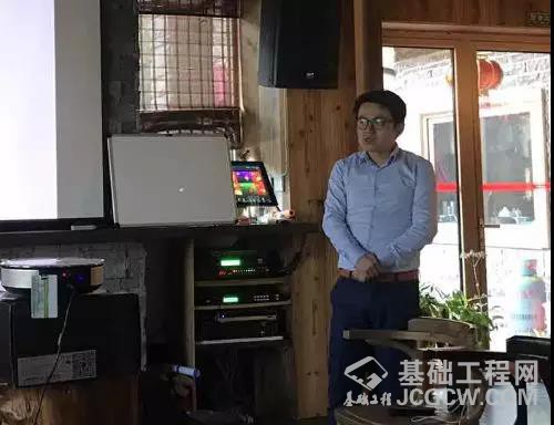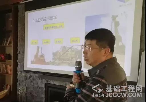 浙江振中总经理曹高峻介绍了本企业引进韩国技术研发的二轴、四轴DCM工法机和双动力头多功能钻机、液压挖机打拔机锤的升级情况,同时介绍振中机械内部质量控制的经验和新液压振动锤租赁业务的开展。