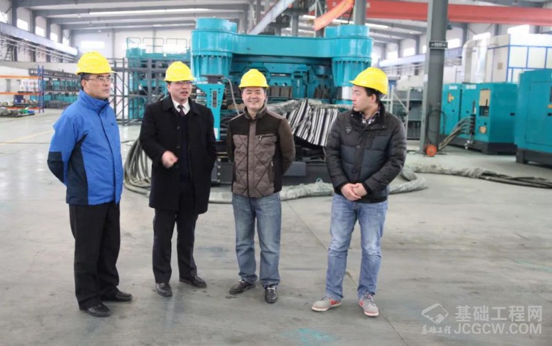 2018年2月28日, 新年伊始,正是春暖花开的季节, 也是工程机械行业的持续回暖的季节,中国工程机械行业协会桩工机械分会秘书长黄志明、上海年佑基础工程有限公司总经理嵇国强、上海永创建设发展有限公司副总经理张志贵、深圳专业基础工程有限公司总工黄新等各位领导一行莅临盾安重工参观指导工作。盾安重工总经理陈建海、营销服务部部长李正龙等陪同接待。