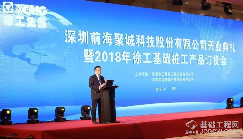 阳春布德泽,万物生光辉。3月6日,徐工基础桩工产品订货会--深圳站完美收官,同时徐工基础特约经销商深圳前海聚诚科技股份有限公司开业典礼盛大举行,此次订货会斩获总价超过1亿元的25台旋挖钻机订单,取得2018年的销售开门红。