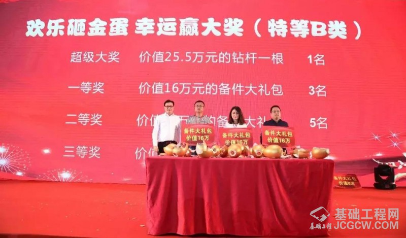 活动吸引了大量新老客户,并对此次会议推出的徐工旋挖钻机主机及备件优惠政策充满了兴趣和期待。为了让客户获得实实在在的优惠和超值感受,徐工基础为客户带来了三重大礼:一是根据客户信用情况,结合徐工基础风险管控机制和客户持有的设备型号,为其提供不同额度的返现;二是全面推出服务“1+1”政策,即产品质保时间延长一倍,解决客户的后顾之忧;三是现场举办“欢乐砸金蛋,弹无虚发”活动,所有订机并缴纳了10万元定金的客户,都将受邀参与当天晚宴的砸金蛋活动,并有机会获得备件大礼包。对客户多层次、多角度的支持与优惠,将现场气氛推向高潮,会场一侧的工作台前,缴纳定金的客户排起了长队,至活动结束,共签约徐工旋挖钻机订单25台,价值1亿多元。