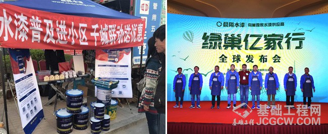 (左图)水漆普及进千城 (右图)晨阳水漆联合家装公司发布绿巢亿家行