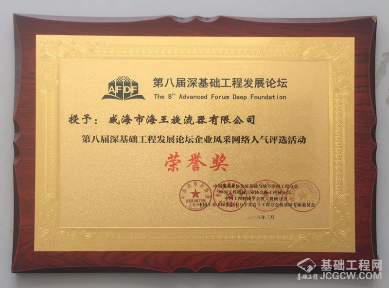 3月29-30日,由中国建筑业协会深基础与地下空间工程分会、中国工程机械工业协会桩工机械分会、中国工程机械学会桩工机械分会、中国土木工程学会土力学及岩土工程分会桩基础专业委员会、江西省地基基础协会联合主办,北京金山基础工程咨询有限公司承办的第八届深基础工程发展论坛在江西南昌凯美开元名都大酒店圆满召开。本届会议得到了来自全国各地的30余家企业的大力支持,威海市海王旋流器荣幸为本次会议的支持单位,并深受到场专家们的热论和赞许!