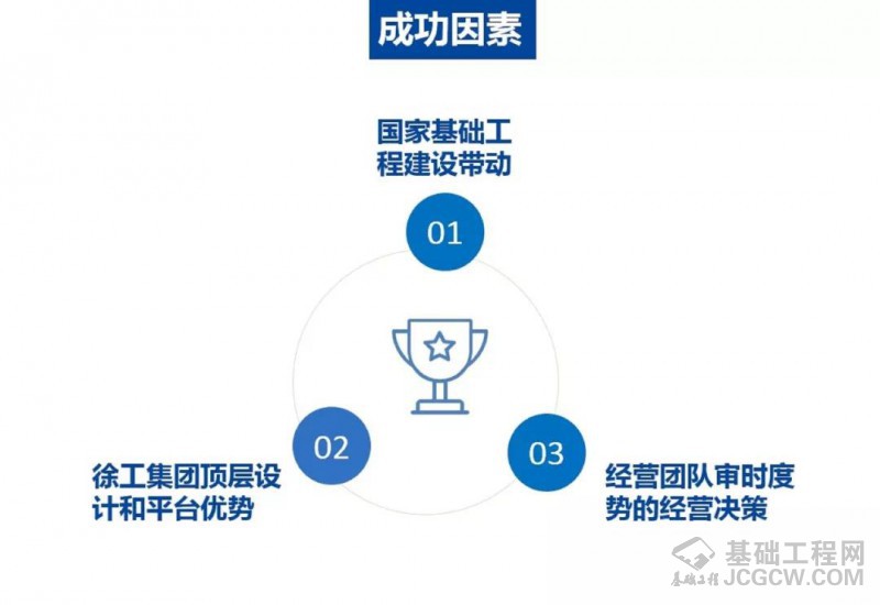 专业化发展之路--十一五末,徐工集团审时度势,决定成立专业化的地下基础和空间施工设备公司,即徐工基础。这项极具远见卓识的专业化发展之路被后来的事实证明是正确的决策,也为今天成为单项冠军创造了条件,奠定了基础。