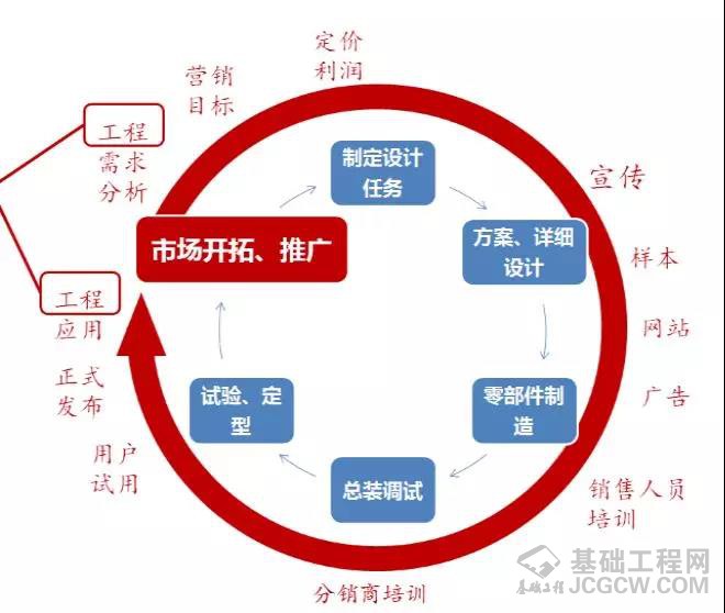 徐工基础刚刚成立,产品线窄、经营规模小、内外部资源严重不足,公司通过“技术开发市场化、市场开发技术化”、“四位一体经营模式”等理念、方法,迅速打开了市场,站稳了脚跟。
