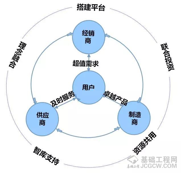 创新“四位一体”经营模式--徐工基础将协同管理理论应用在企业管理上进行自主创新,改变传统线状管理,整合价值链的人才、技术、信息、文化等资源,构建以用户为中心的“用户、制造商、供应商、经销商”四位一体协同发展体系。使全价值链高效协同,凝成合力,破解内外部资源不足的问题,共同实现企业战略目标 。