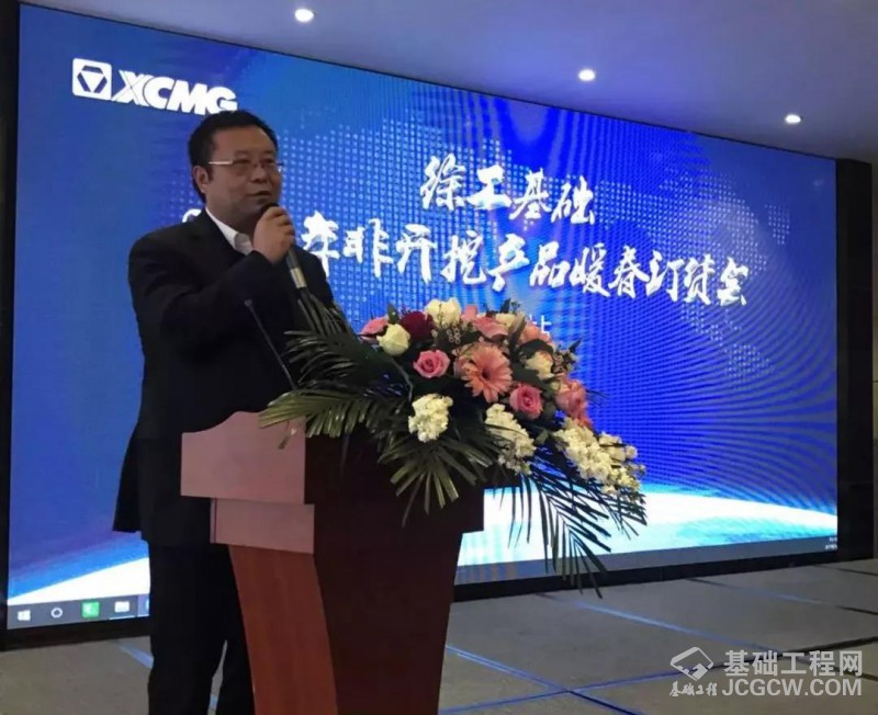 会上,徐工基础副总经理张忠海致辞,张总介绍了徐工基础产品门类,经营理念及经营规模,与经销商合肥品胜、湖北徐基的合作共赢情况。