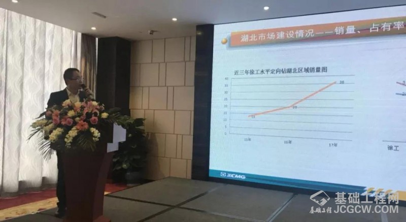 徐工基础武汉办事处主任汪旭峰在会上作了《湖北市场建设工作报告》,介绍了湖北市场建设现状及未来3年的市场建设规划,表示要与经销商等合作伙伴共同努力,打造以徐工基础为核心的统一服务体系,设立营销服务网络,完善市场网点布局,建立7S服务旗舰店,完善业务板块。