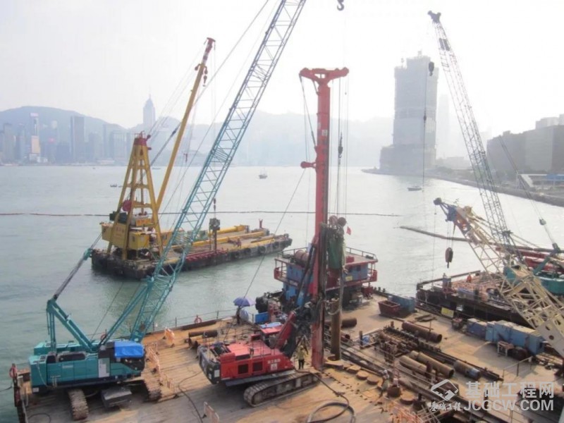 徐工XR220DIV气动潜孔锤旋挖钻机在香港维多利亚港施工