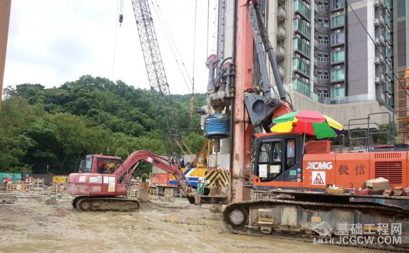 徐工XR220DIV气动潜孔锤旋挖钻机在香港进行房建桩施工