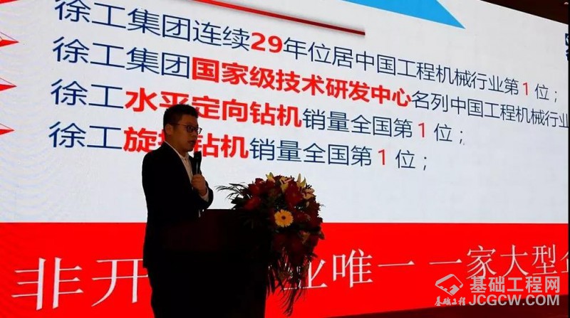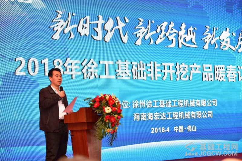 徐工基础副总经理张世伟在会议上致欢迎辞,张总代表徐工基础全体员工向现场嘉宾致以最真诚的感谢,他表示徐工基础今日的辉煌成就离不开广大客户朋友的鼎力支持。张总向与会嘉宾介绍了徐工基础的发展历程、服务理念及当前徐工水平定向钻机火热的市场形势。连续多年徐工水平定向钻机行业市场占有率稳居第一,2017年更是以42%的市场占有率引领行业发展。