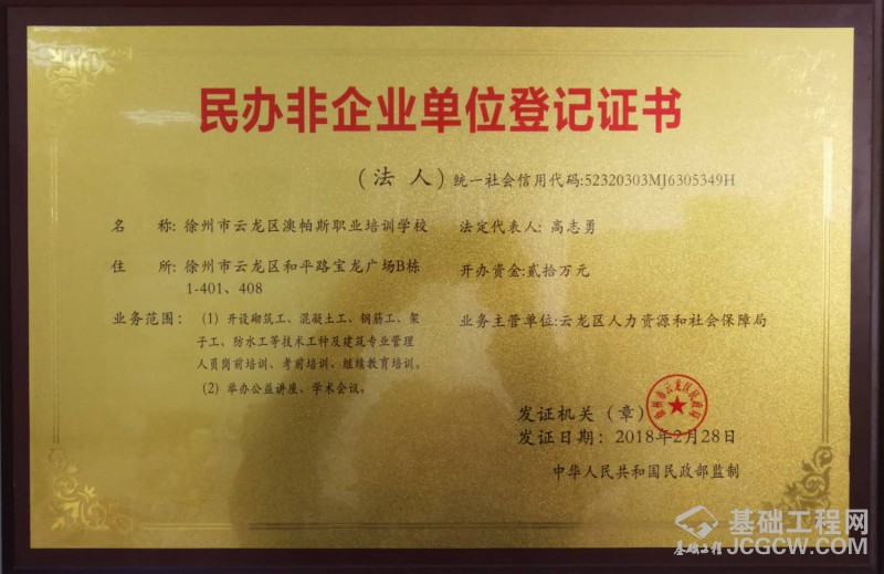 学尔森教育徐州分校以坚韧不拔、勇攀高峰的精神为江苏省安捷岩土工程有限公司先后承接了一大批有影响的项目,以公司“质量、安全、环境和职业健康管理体系”为理念,过硬的技术、优良的装备、可靠的安全保障体系为支柱,对徐州及周边地区基础设施建设做出了巨大的贡献。